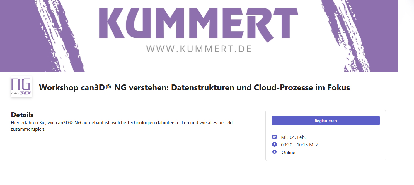 10.02.2026 11:00 Uhr Hier registrieren für can3D®NG verstehen: Datenstrukturen und Cloud-Prozesse im Fokus am 10.02.2026 ab 11:00 Uhr